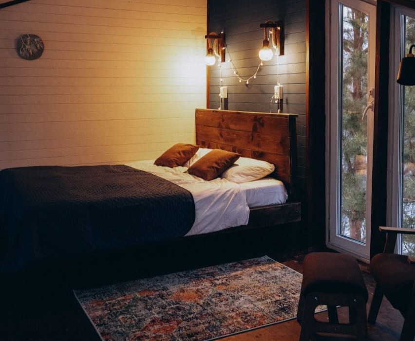 | Барн 4-местный | 54 кв.м. | 4 чел. | Мангальная зона / беседка (мангал), Мебель (диван, диван раскладной, кровать двуспальная, стол, стул... | |