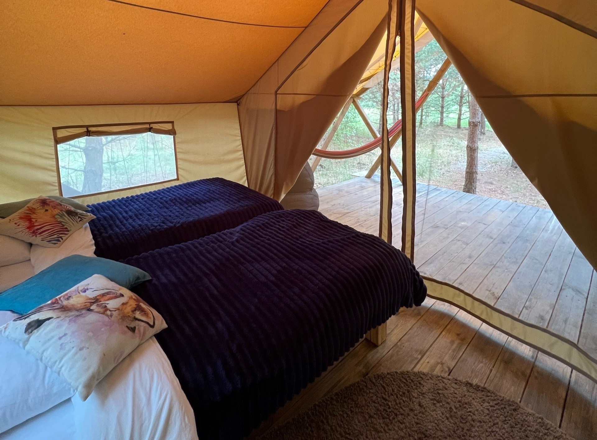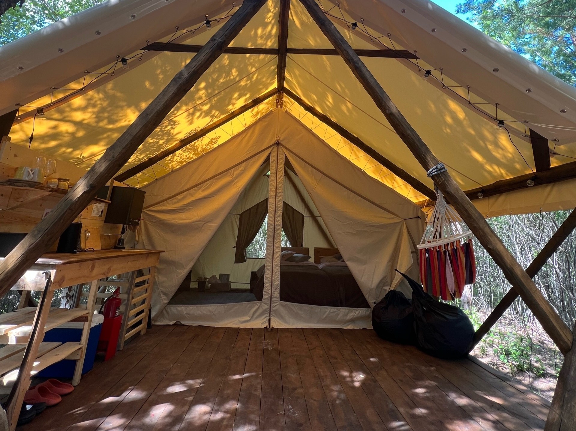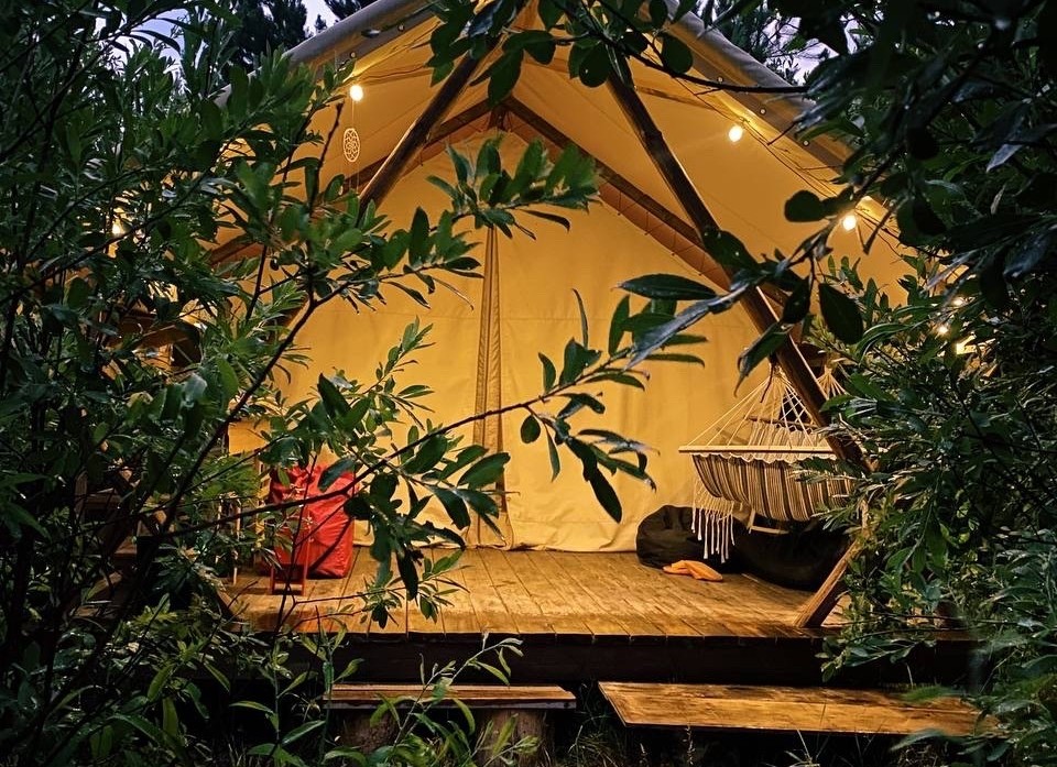 | Тент-хаус 2-местный Сафари | 12 кв.м. | 2 чел. | Мебель (вешалка, кровати односпальные, стол, стулья), Мини-кухня, Оборудование (вентилятор, набор по... |
